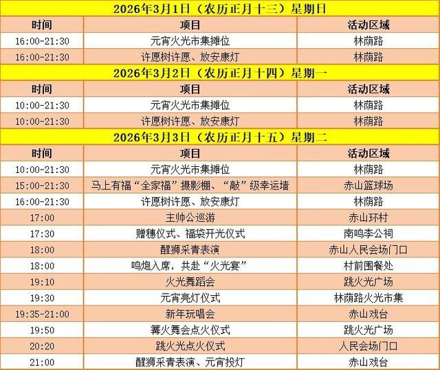 本次活动将重现主帅公巡游、跳火光等盛况,让广大市民游客深入领略国家AAA级旅游景区的文化底蕴,感受传统民俗文化的独特魅力。元宵节当天19:50,跳火光广场还将准时燃起篝火,与赤山村民欢聚一堂,载歌载舞尽情享受欢乐氛围。