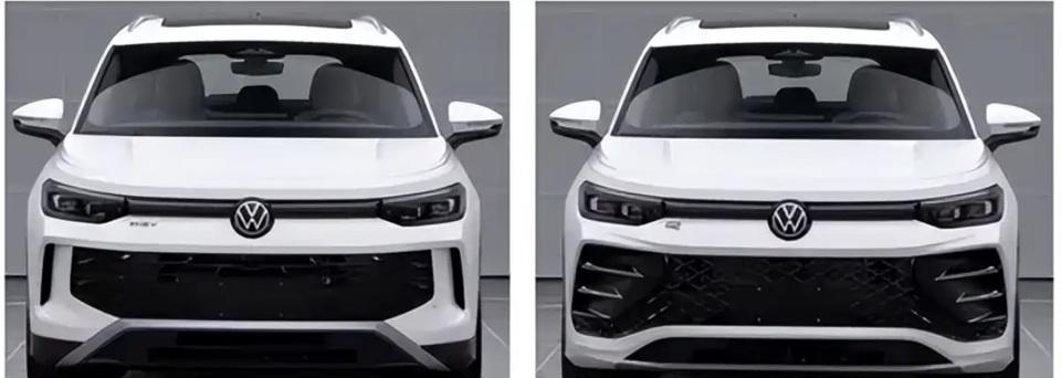 外观设计采用双版本策略,一个是常规版本,另外一个则是R-Line版本,适配不同用户审美。其中常规版本风格偏向家用稳重,前脸配备黑色横向饰条格栅,车头醒目位置镶嵌“PHEV”标识彰显新能源身份,贯穿式LED灯带连接两侧IQ. Light大灯组,搭配可发光品牌LOGO,科技感拉满。R-Line版本则强化运动属性,格栅替换为独特菱形饰条,两侧加入横向“风刃”饰条,车门下方装饰条样式专属化,后包围采用蜂窝纹路设计,搭配熏黑元素与“R”标识,战斗气息十足。